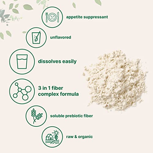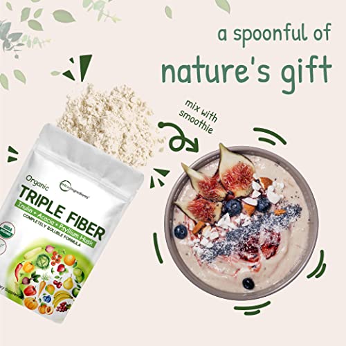 Organic Triple Soluble Fiber Powder (Chicory Root Inulin Fiber, Acacia Fiber and Psyllium Husks Fiber Blend 3 in 1 Complex Formula), 2 Pounds (32 Ounce), Daily Fiber Advanced Powder, Unflavored, Hunger Control and Vegan Friendly.
