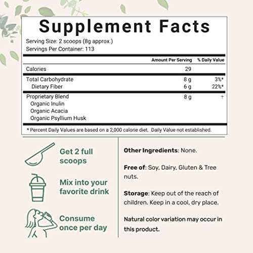 Specification: Organic Fiber Supplement (Inulin, Acacia, Psyllium Husk), 2 Pounds, 3 in 1 Fiber Formula, Daily Fiber, Unflavored…