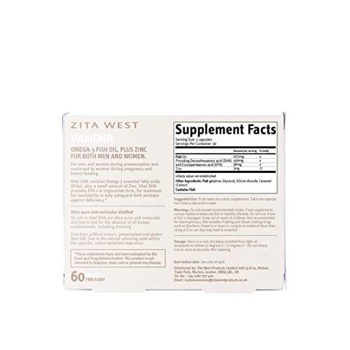 Specification: Zita West Vital DHA with Omega 3 | Prenatal Vitamin with DHA and EPA, Plus Zinc for Fertility, Pregnancy, and…