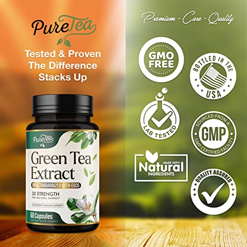 Premium Green Tea Extract: PureTea Premium Green Tea Extract contains a green tea blend (with 98% Egcg, Polyphenols and Antioxidants) to support energy and immune support in Men and Women