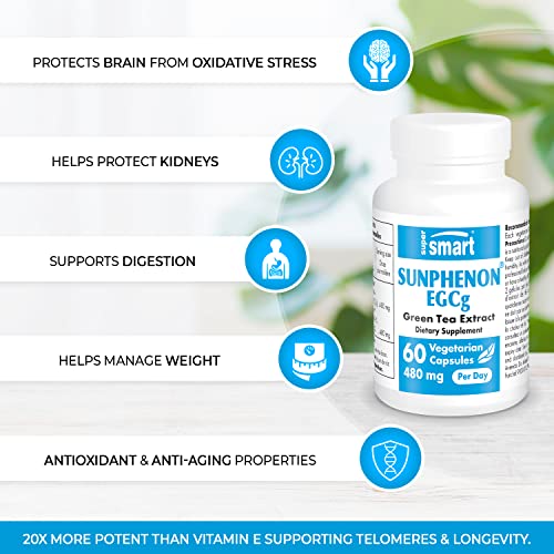 Supersmart – Sunphenon ® EGCg 480 mg Per Day – Extract of Green Tea – 20 Times Stronger Than Vitamin E – Antioxidant…