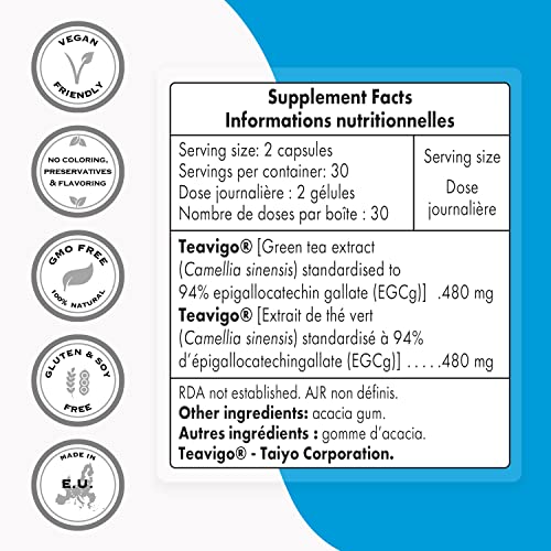 🔬 CONTAIN: Sunphenon [Extract of green tea (Camellia sinensis) standardized to 95% epigallocatechin-gallate (EGCg)] | Other ingredients: Acacia gum, rice bran.