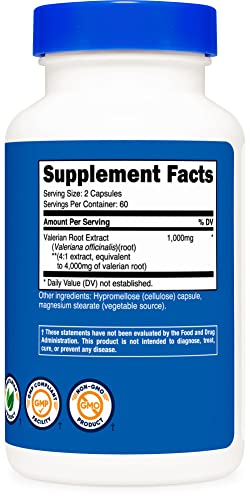 Nutricost Valerian Root Capsules (1000mg Per Serving) 120 Capsules – 4,000mg Equivalent Per Serving (4:1 Extract…