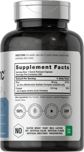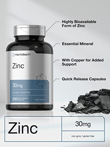 Specification: Zinc 30mg | 250 Capsules | OptiZinc | Non-GMO, Gluten Free Supplement | by Horbaach